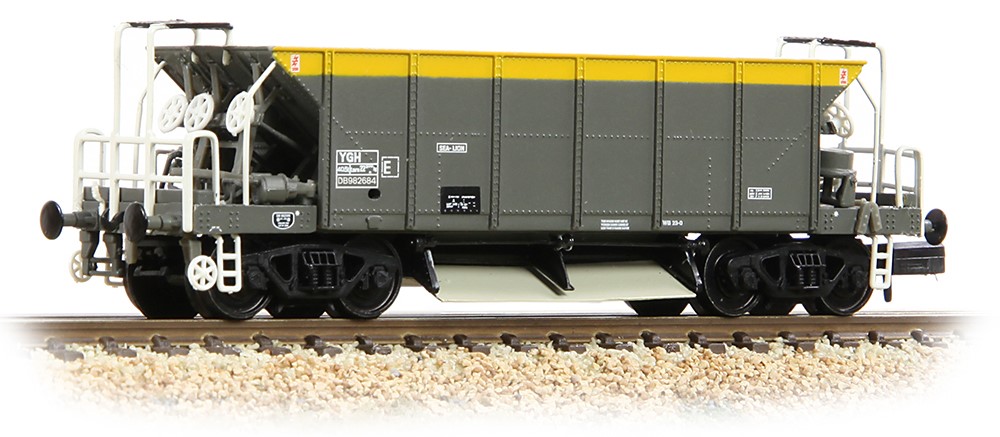 Our first new Bogie Hopper Wagons are British Rail YGH ‘Sealion’ Wagons in Engineers’ Grey and Yellow. These models have an accessory pack, NEM coupling sockets, separate handrails, etched platforms, underframe steps and other adornments. 377-001B carries running number DB982599 and 377-001C carries number DB982684.