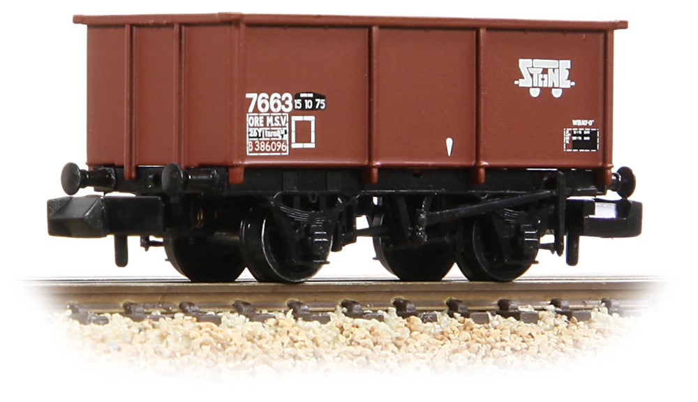 The next models are Steel Tippler Wagons in BR Bauxite with TOPS markings. These wagons come with realistic loads of stone. 377-278A carries running number B385893 and 377-278B carries running number B386096.