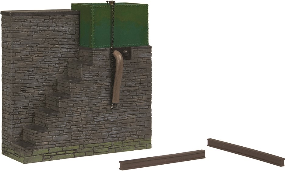 The next building is the Slate Built Water Tower (47-0102). This green water tank is mounted on a slate base, and there are stairs also built from slate that lead up to the tank.