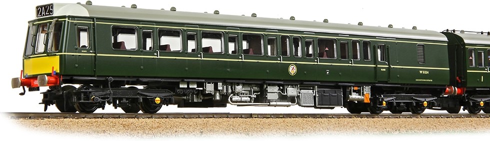 Our first Class 117 3-Car DMU is Set No. R334 in BR Green with Small Yellow Panels with destination blinds for Reading and Paddington. This set consists of DBMS car No. W51334, TCL car No. W59486 and DMS car No. W51376, which run on the original type of bogie.