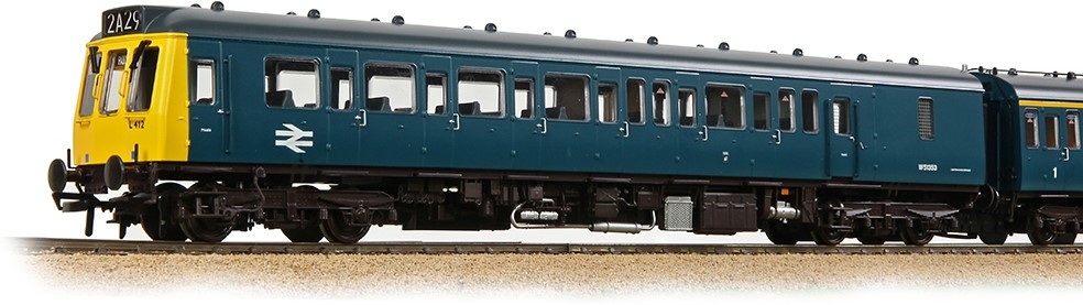 Our next Class 117 3-Car DMU is Set No. L412 in BR Blue with destination blinds for Paddington and Reading. This set consists of DBMS car No. W51353, TCL car No. W59505 and DMS car No. WF1395, which run on the modified type of bogie with heavier bolsters and side control buffers.