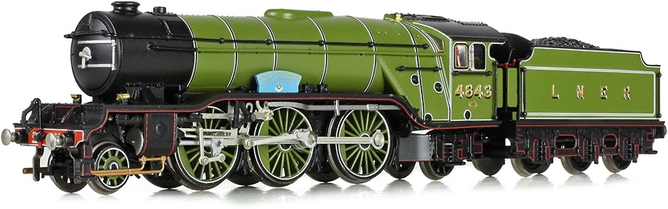 Our next LNER V2 Class locomotive is No. 4843 which is decorated in LNER Lined Green and has been named ‘King’s Own Yorkshire Light Infantry’. As with the previous model, this locomotive also features the ‘Monobloc’ cylinder casing and inside steam pipes, LNER smokebox door with lower top lamp bracket and tender with a high-front/low-rear coal space divider. However, there are also pre-fitted, fully decorated nameplates.