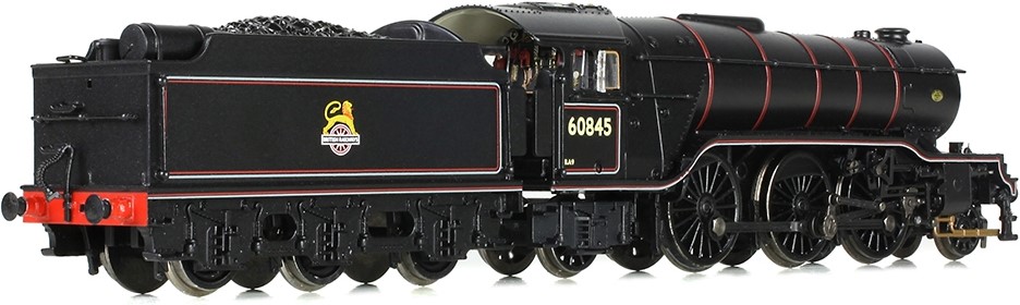 The third LNER V2 Class model is No. 60845, which is decorated in British Railways’ Lined Black livery with the early BR emblem. This locomotive has a BR style smokebox door, which has had the top lamp bracket raised to a higher position in order to allow for a number plate. The cylinder casing features the original ‘Monobloc’ design with inner steam pipes and the tender features the original coal space divider with a high front and low rear.