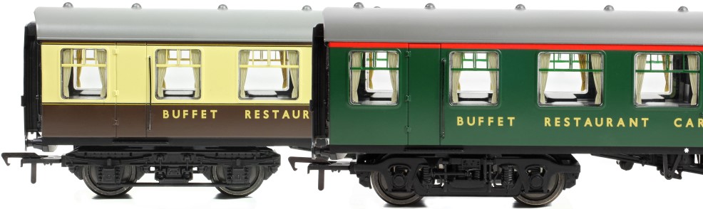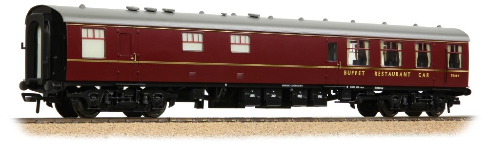 Our final new type of BR Mk1 coach is the Restaurant Buffet carriage, which feature a kitchen and pantry along with a service bar. The coaches are equipped with either BR2 or Commonwealth bogies as appropriate and the end steps are removed on all models.