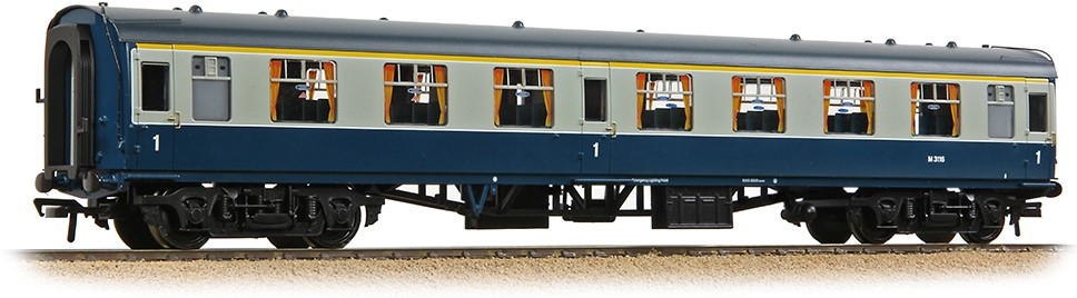 Our first new variant of Mk1 Coach is the BR MK1 Brake Second Open. These coaches all feature BR1 bogies. The earlier coaches have periscopes on the roof which would have made it easier for the guard to see signals, but these have been removed on the coaches from later eras. One model in BR Blue and Grey depicts a Brake Second Open Micro Buffet (BSOT) coach (39-804), which has an interior that features a counter and other spaces that are essential for preparing and serving food.