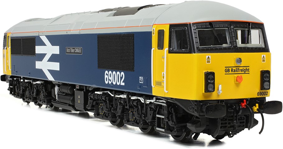 Our second Class 69 model depicts No. 69002, which has been named ‘Bob Tiller CM&EE’. Decorated in GBRf’s interpretation of the BR Blue livery with large logo, this locomotive’s cab depicts the steel version of the nose with Doncaster style side windows.