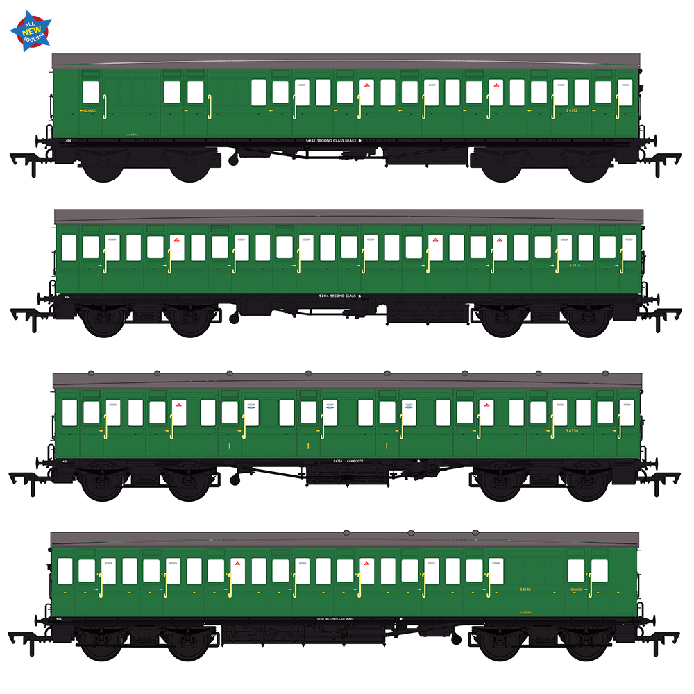 Four coach packs will be available initially, each containing 4-coaches and with a RRP of £269.95 per pack. Delivery is scheduled for Q4 2025 and the following items can now be ordered from any Bachmann retailer: