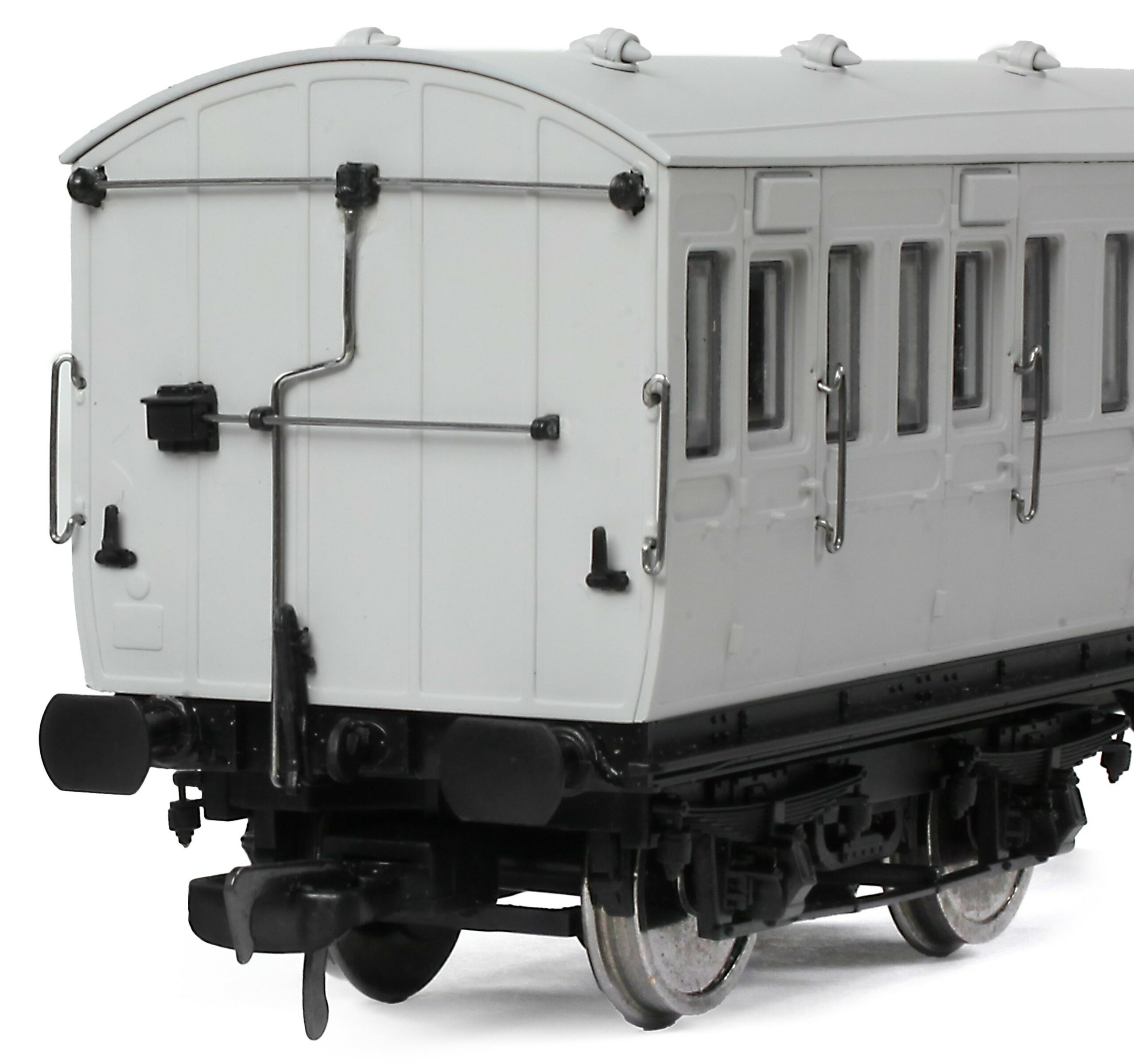 Each model sports a high level of detail centred around the injection moulded bodyshells which boast fine panel engraving and intricately moulded ventilators, doors stops and door handles. Added separately are the ornate metal handrails aside every door, the coach ends steps which are produced in etched brass, lamp irons at either end of each vehicle and the emergency brake gear which combines injection moulded components and metal wire pipework.