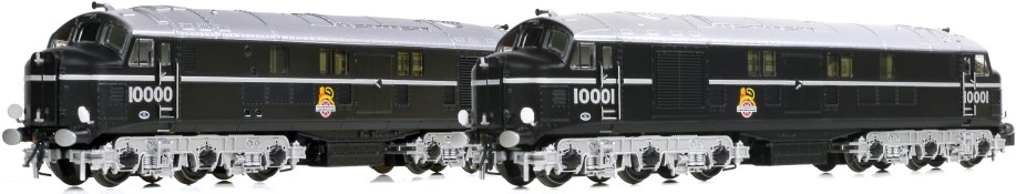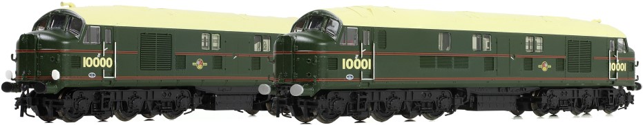 Our next pairing of Nos. 10000 and 10001 is decorated in BR’s green livery with red lining and the late BR crest. Like the previous models, this pair also features six headcode lights and brackets at each end, modified exhaust panels with vent grilles and water scoops.
