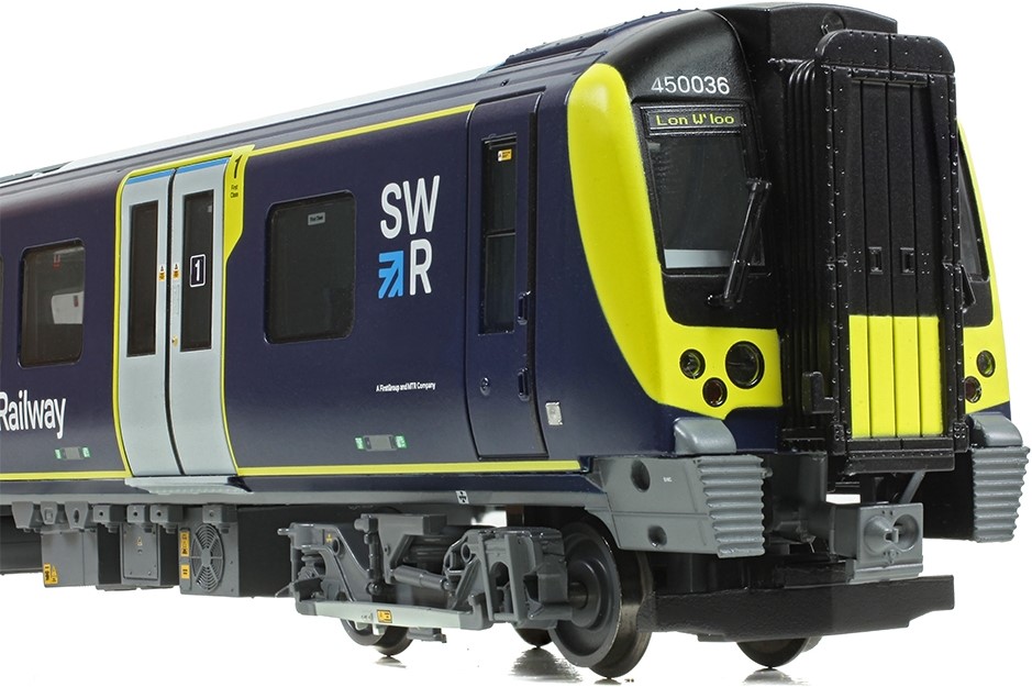 Our final new ‘Desiro’ EMU is Class 450/0 No. 450036 in South Western Railway livery. This unit is formed from DMOC Car No. 63236, TOSL Car No. 64236, TOSLW Car No. 68136 and DMOC Car No. 63636 and features destination blinds for London Waterloo.